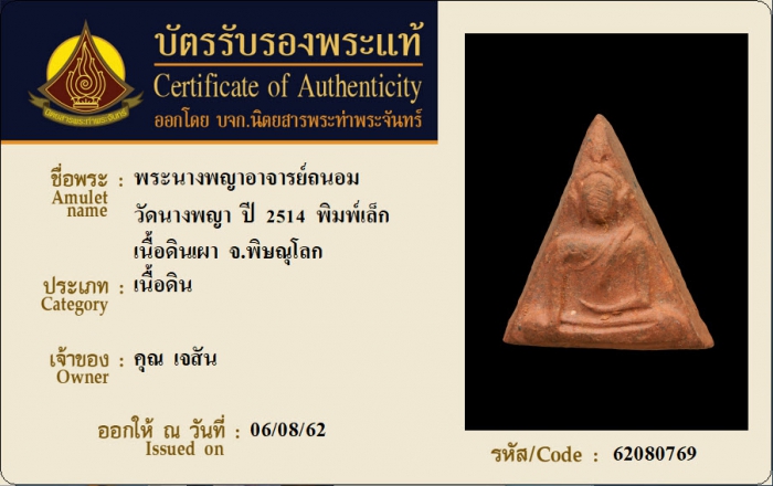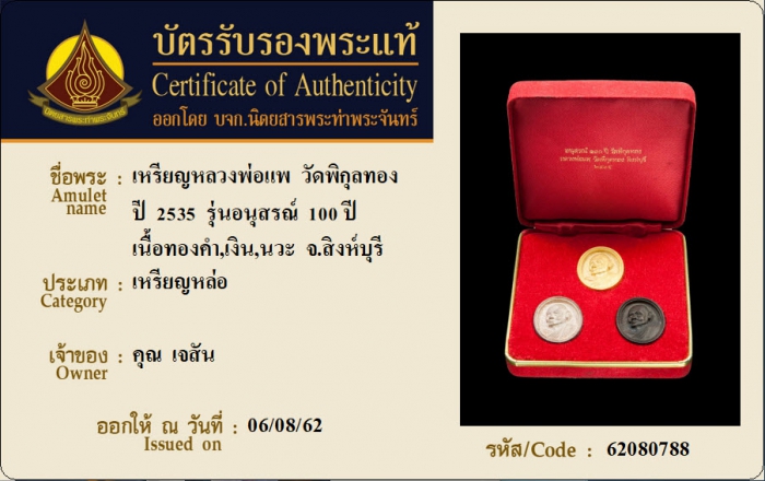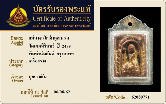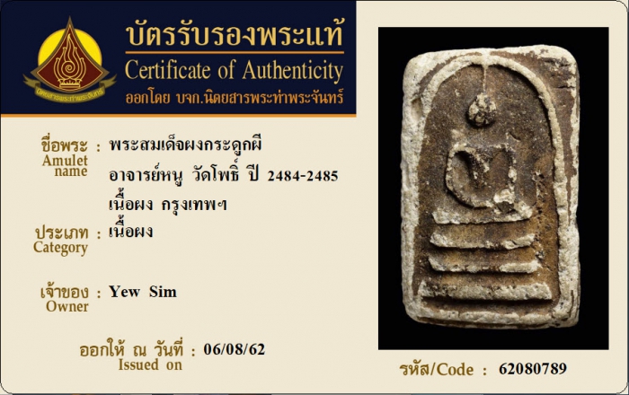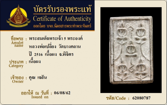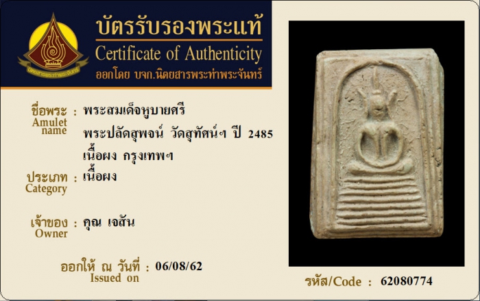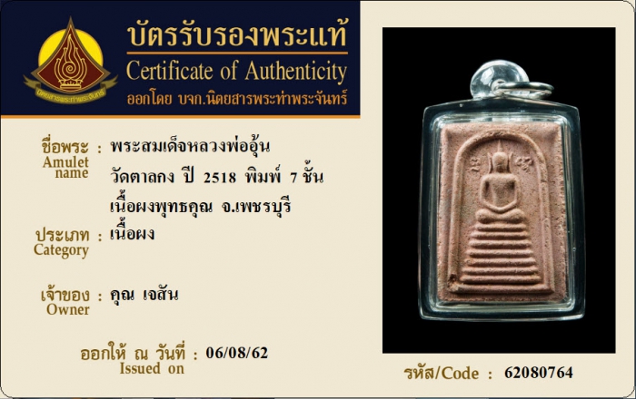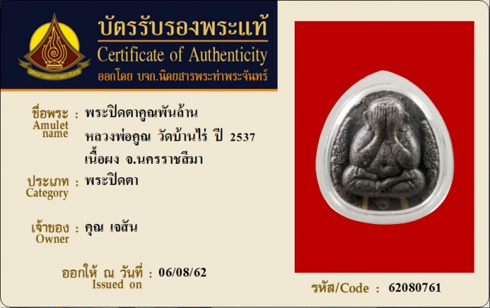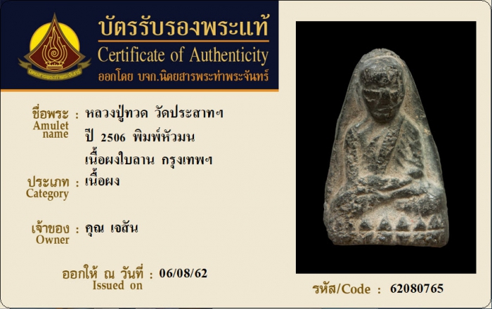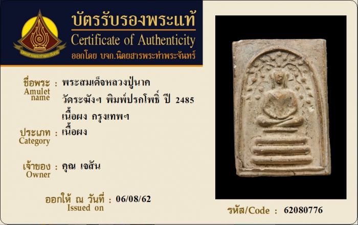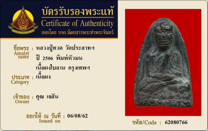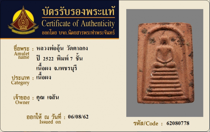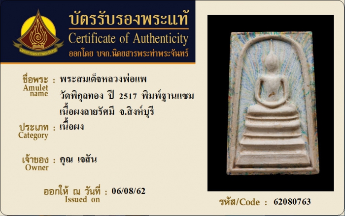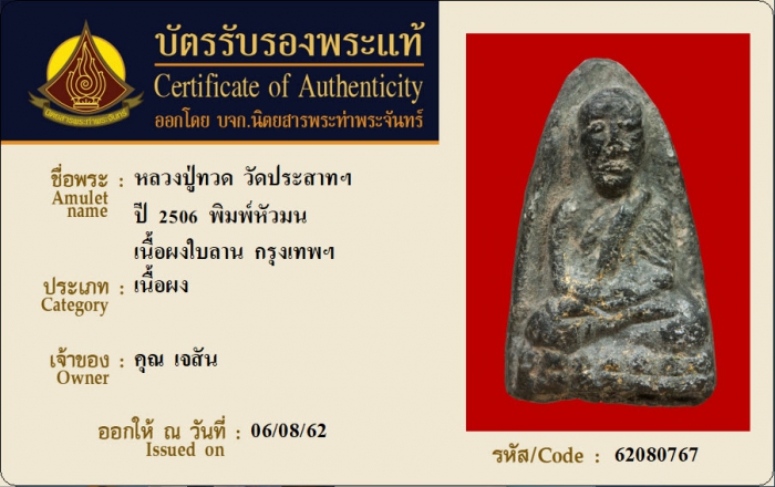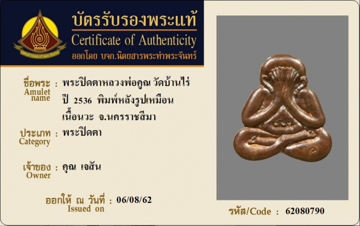 ค้นหาใบการันตีพระแท้