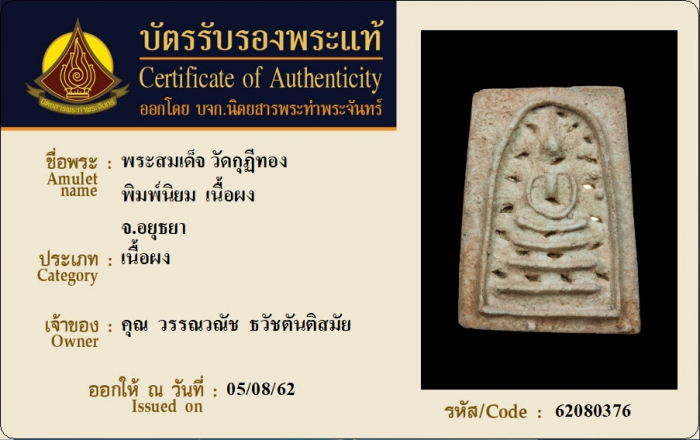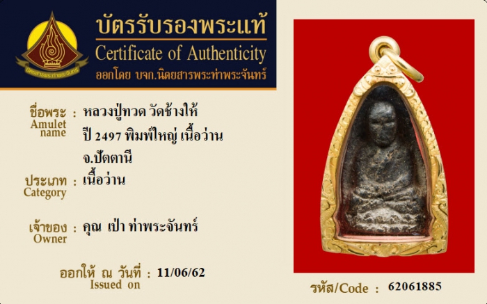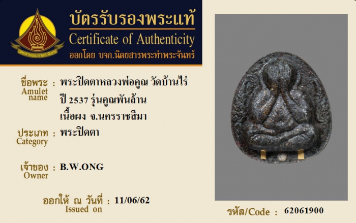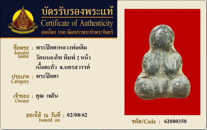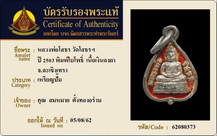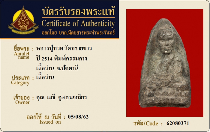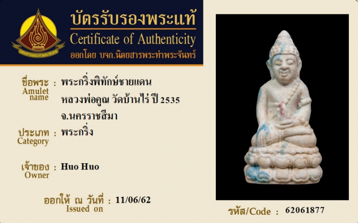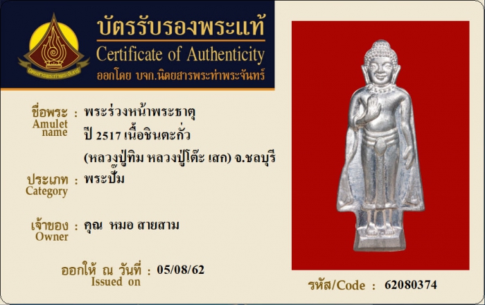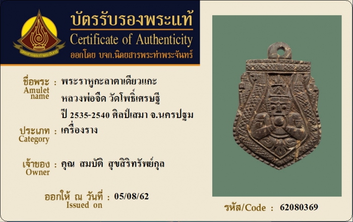 ค้นหาใบการันตีพระแท้