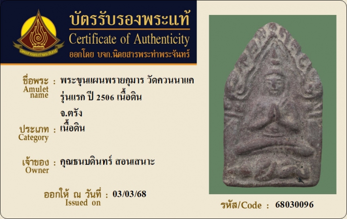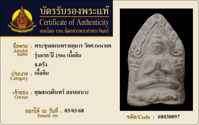 ค้นหาใบการันตีพระแท้