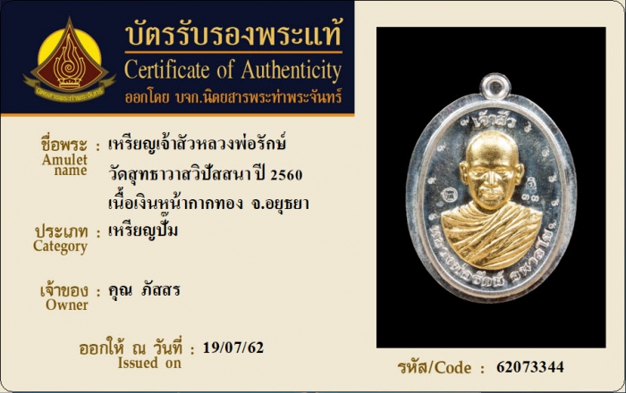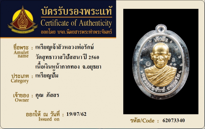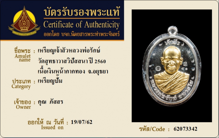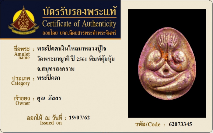 ค้นหาใบการันตีพระแท้