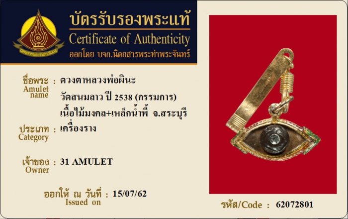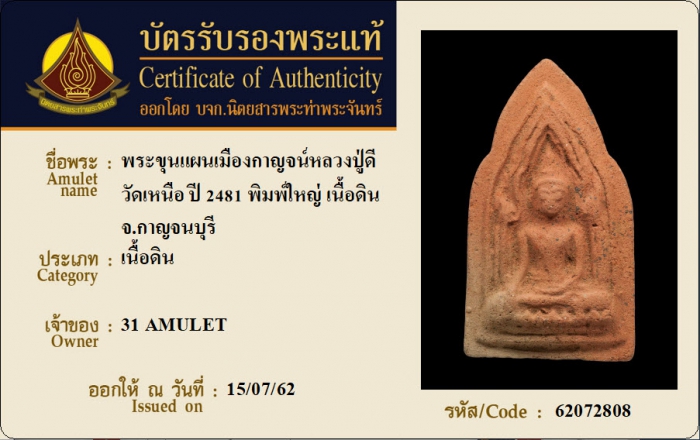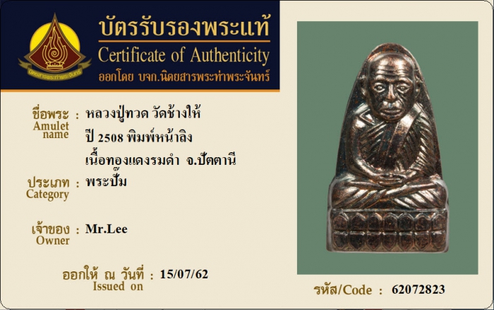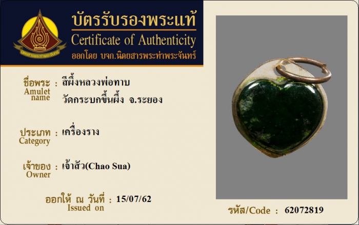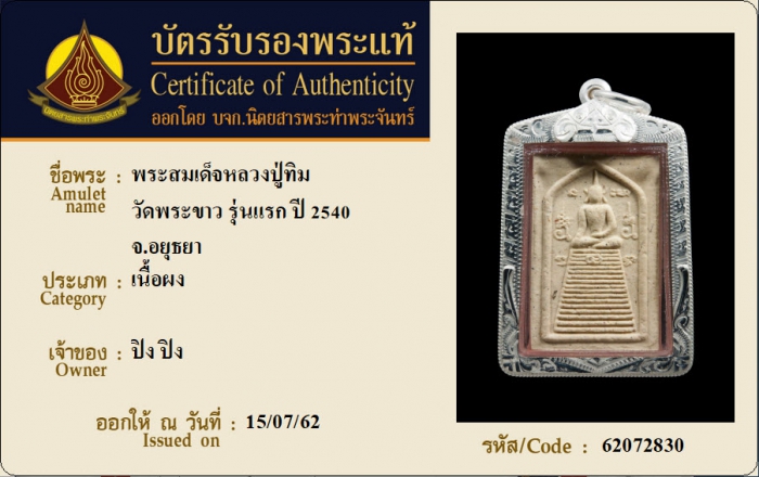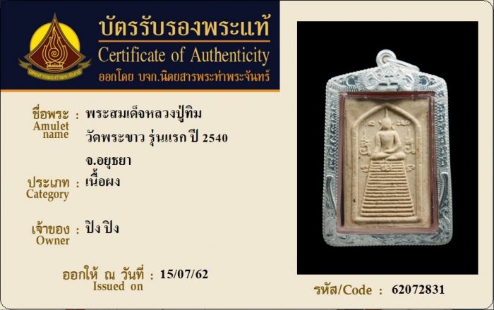 ค้นหาใบการันตีพระแท้