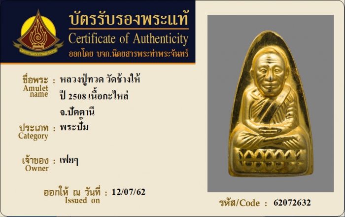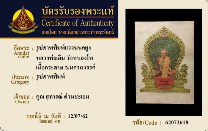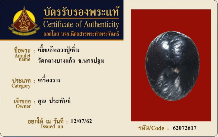 ค้นหาใบการันตีพระแท้