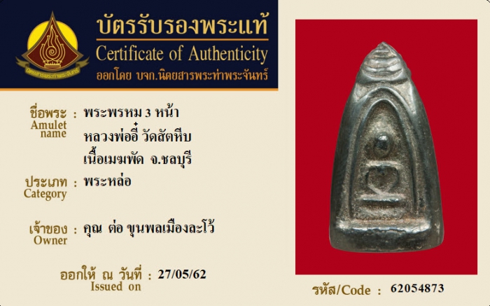 ค้นหาใบการันตีพระแท้