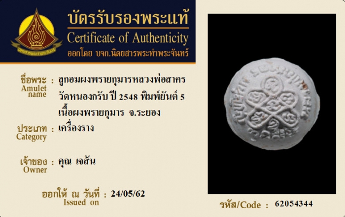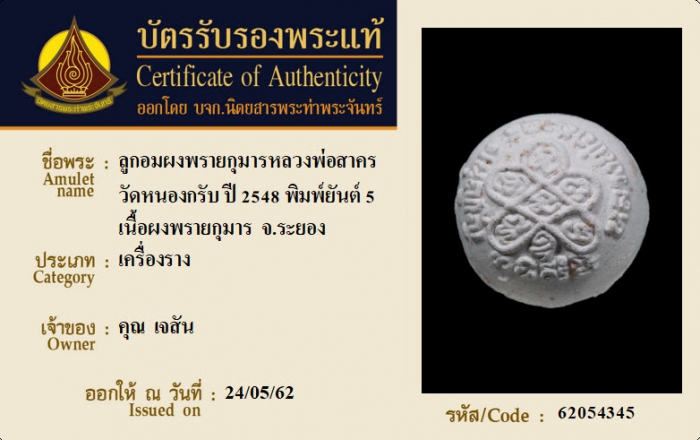 ค้นหาใบการันตีพระแท้