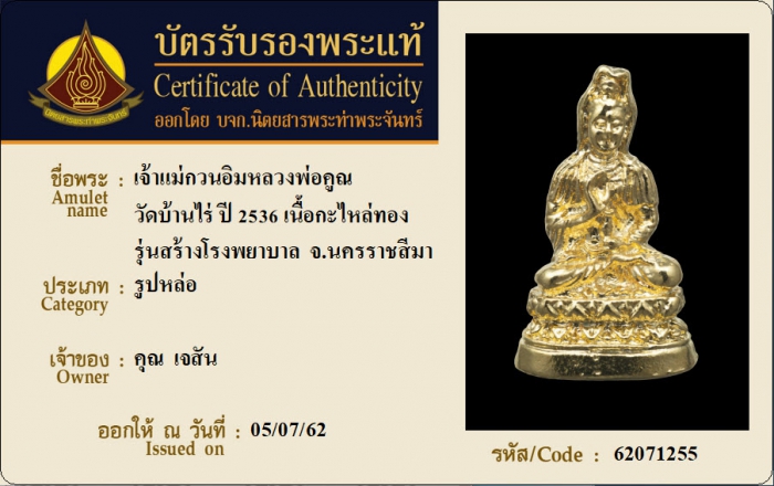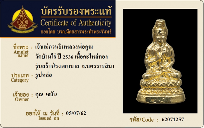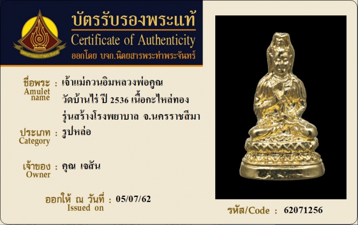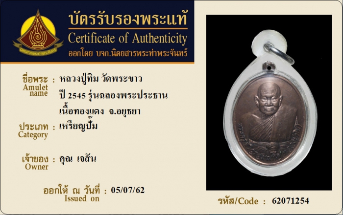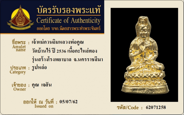 ค้นหาใบการันตีพระแท้