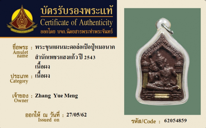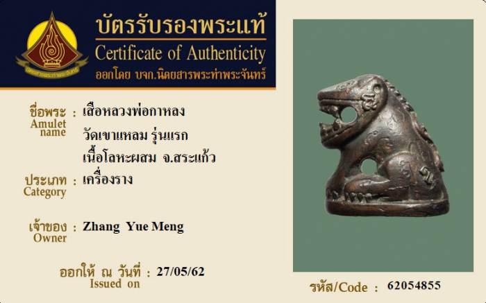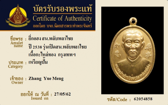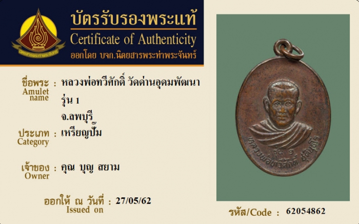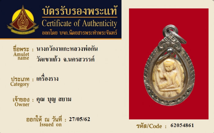 ค้นหาใบการันตีพระแท้