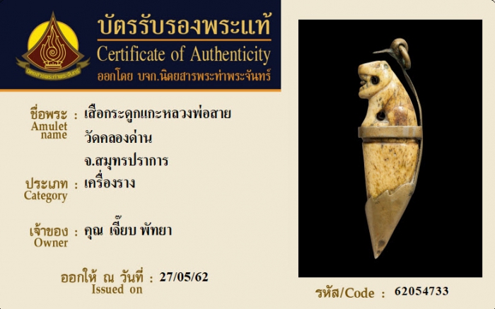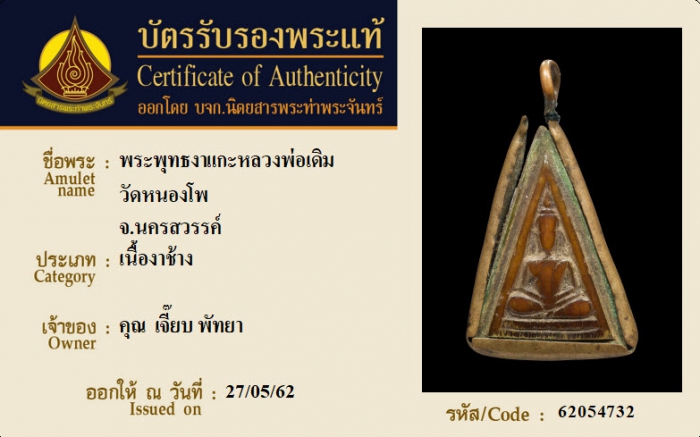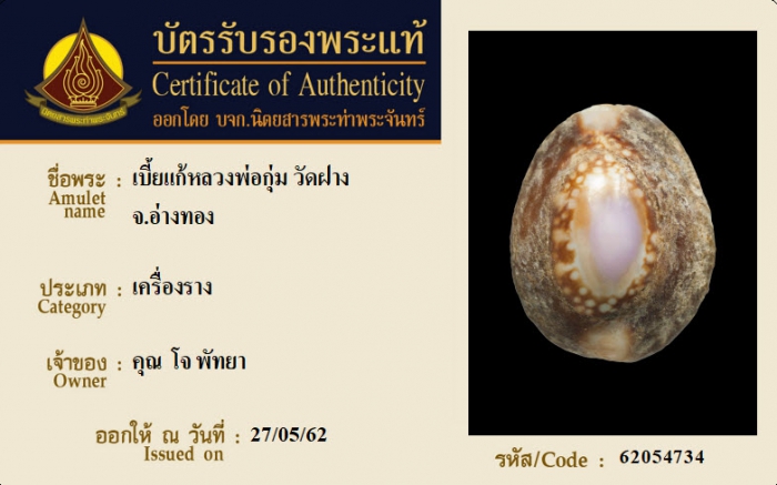 ค้นหาใบการันตีพระแท้