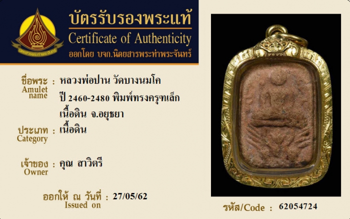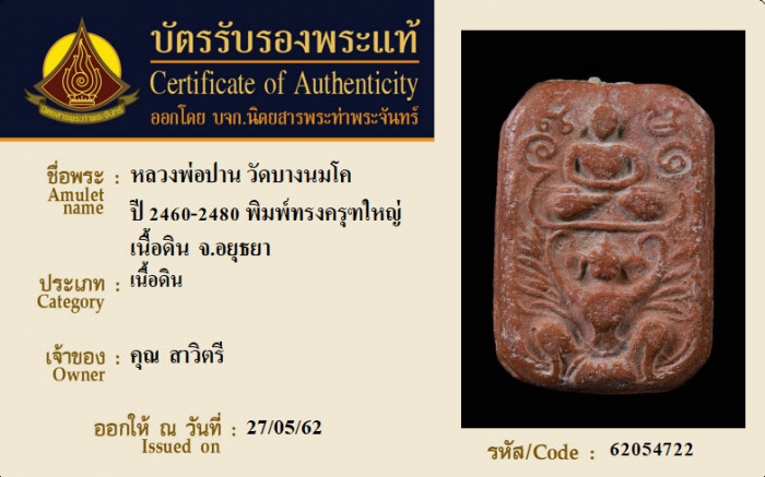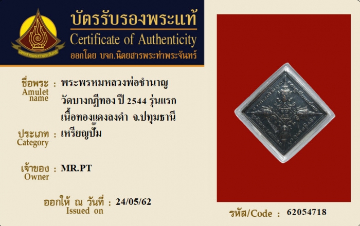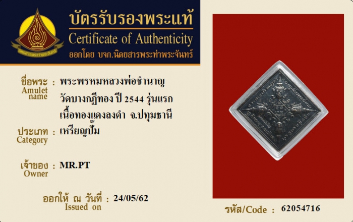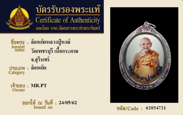 ค้นหาใบการันตีพระแท้