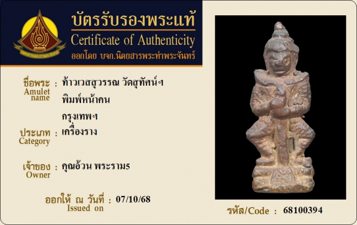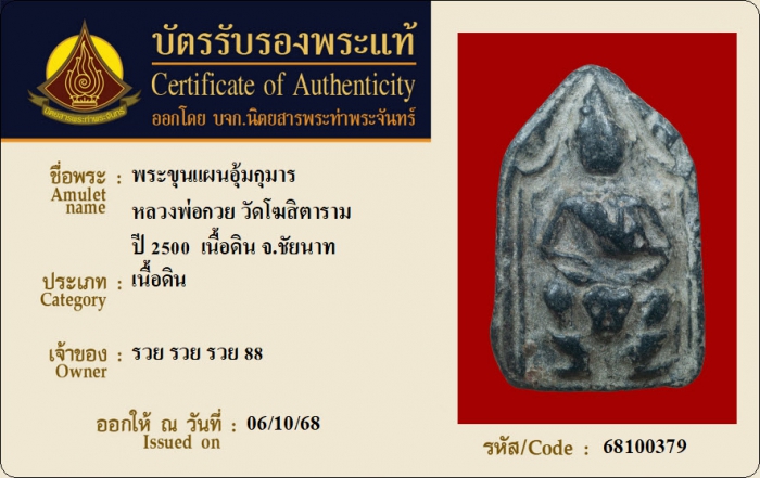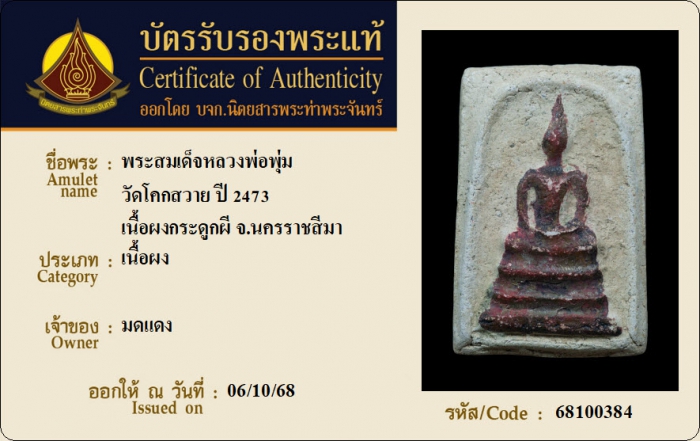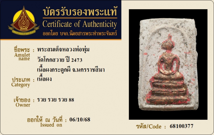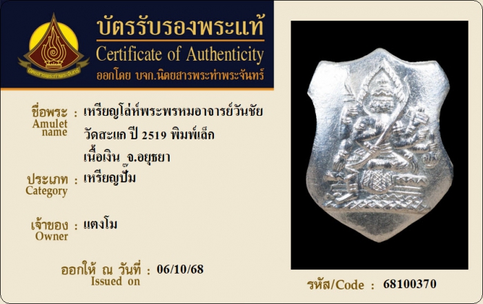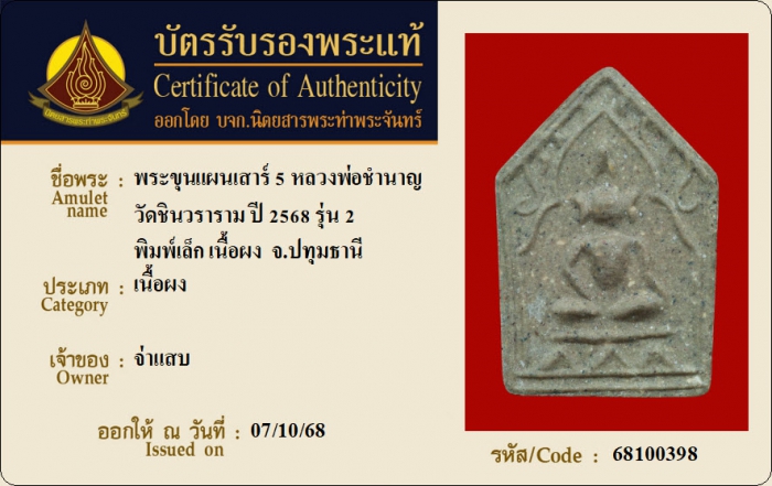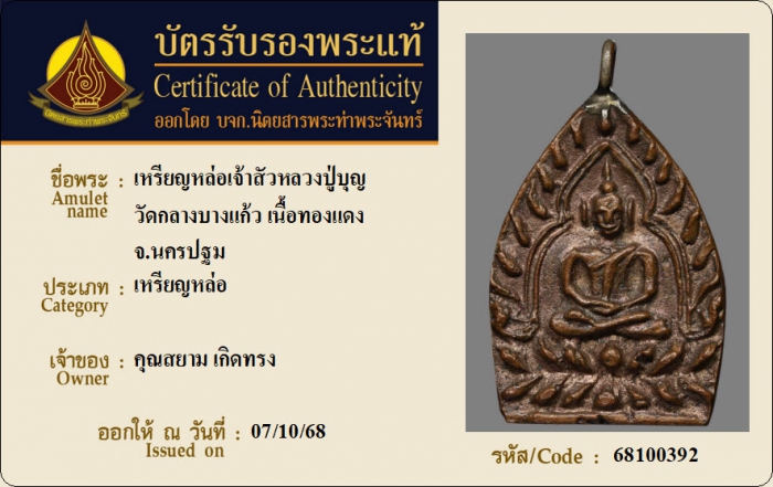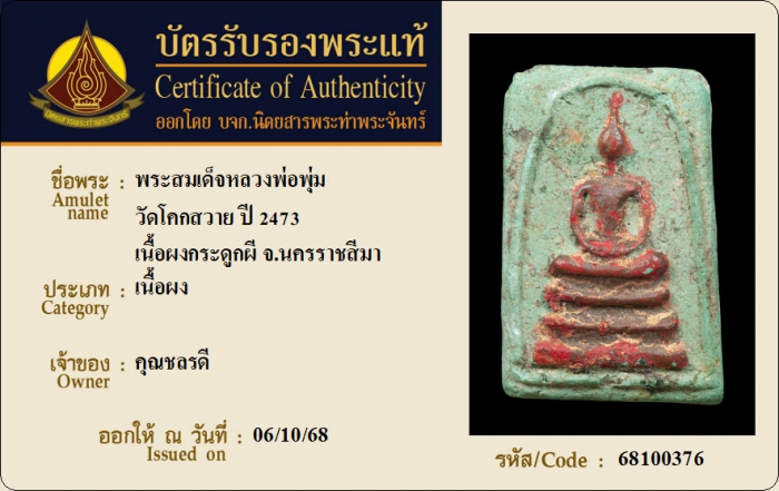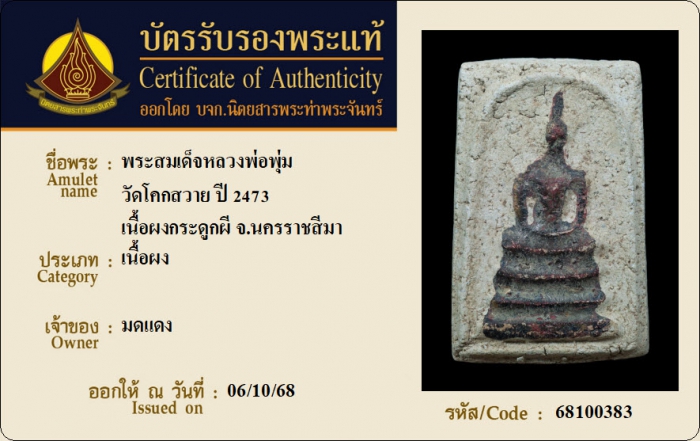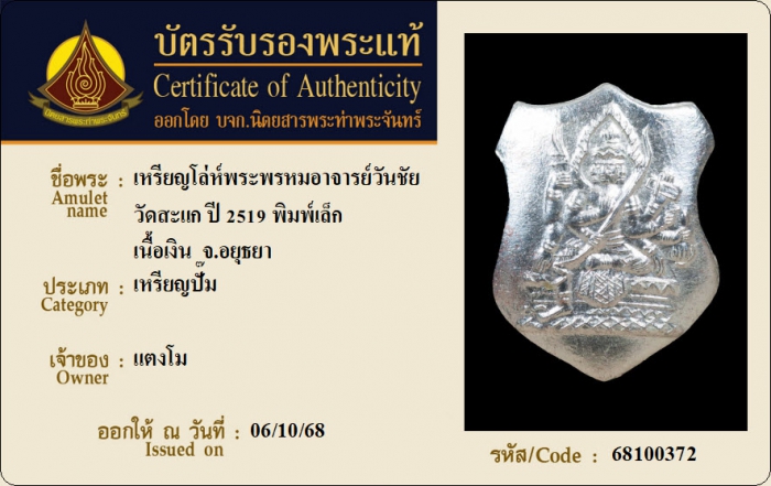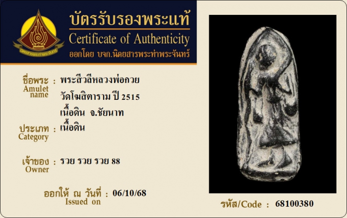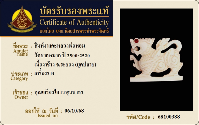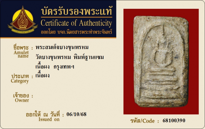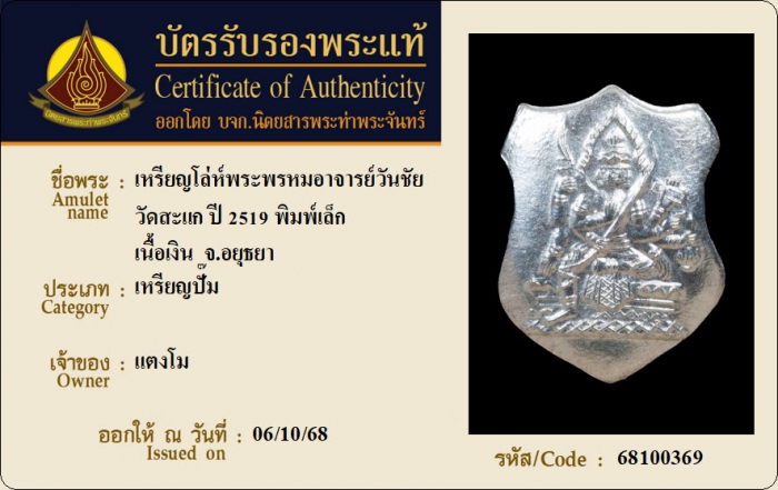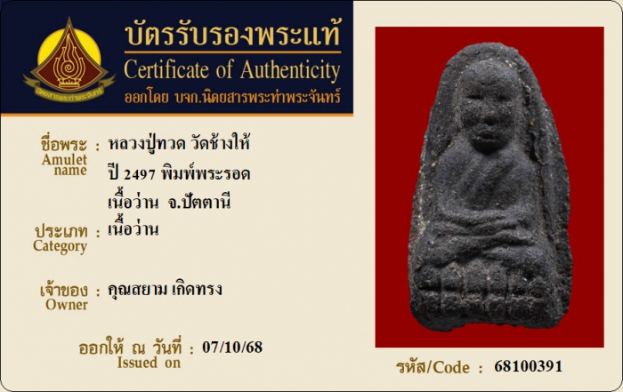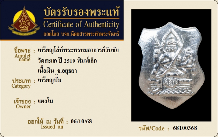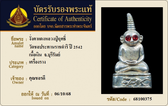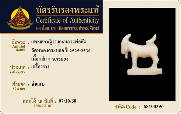 ค้นหาใบการันตีพระแท้