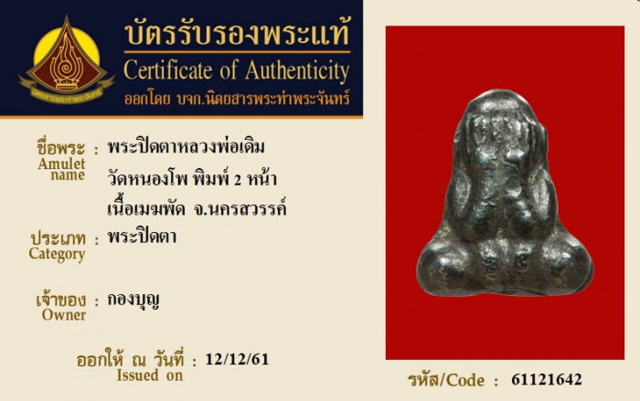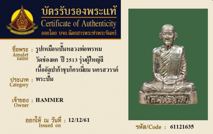 ค้นหาใบการันตีพระแท้