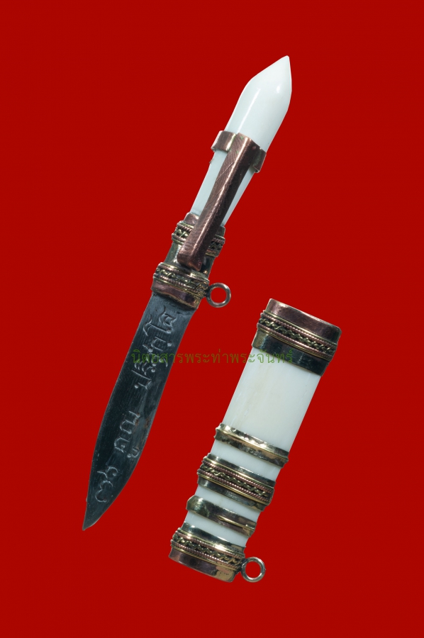 หมายเลขใบการันตี 65100965 ชื่อพระ มีดหมอสาริกาหลวงพ่อคูณ วัดบ้านไร่ ปี 2536 ด้ามงา ฝักงา จ.นครราชสีมา เจ้าของ มังกรแดง หมวดหมู่ เครื่องราง