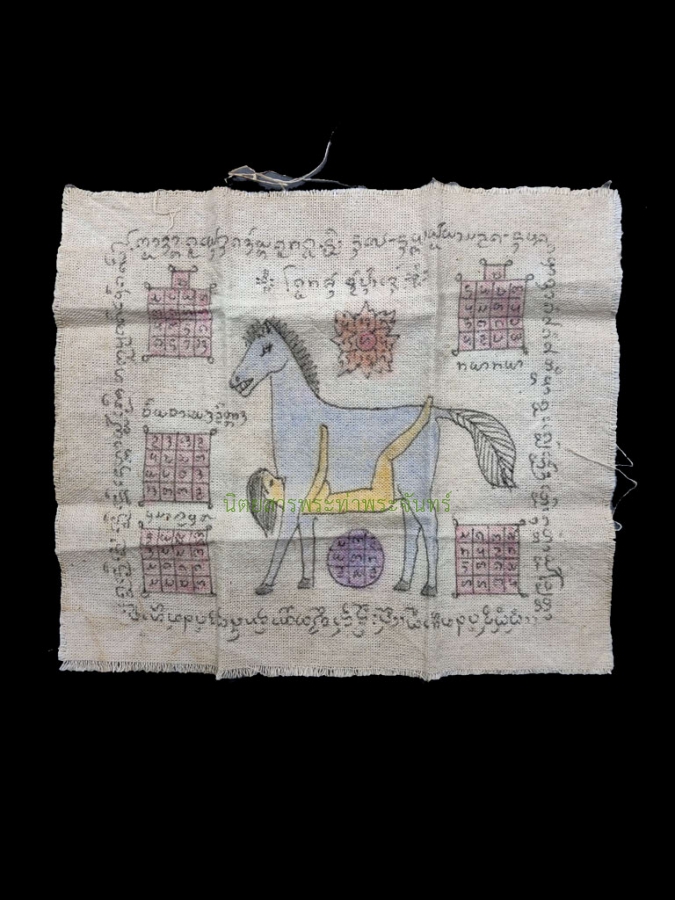 หมายเลขใบการันตี 65120948 ชื่อพระ ผ้ายันต์ม้าเสพนางครูบาวัง วัดบ้านเด่น ปี 2490-2500 จ.ตาก เจ้าของ 74 Amulets หมวดหมู่ เครื่องราง