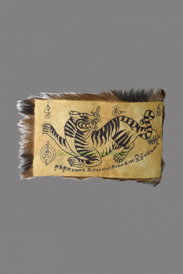 หมายเลขใบการันตี 65121900 ชื่อพระ แผ่นหนังเสือหลวงพ่อเปิ่น วัดบางพระ ปี 2530 ยันต์เสือคาบดาบ จ.นครปฐม เจ้าของ Mugen หมวดหมู่ เครื่องราง