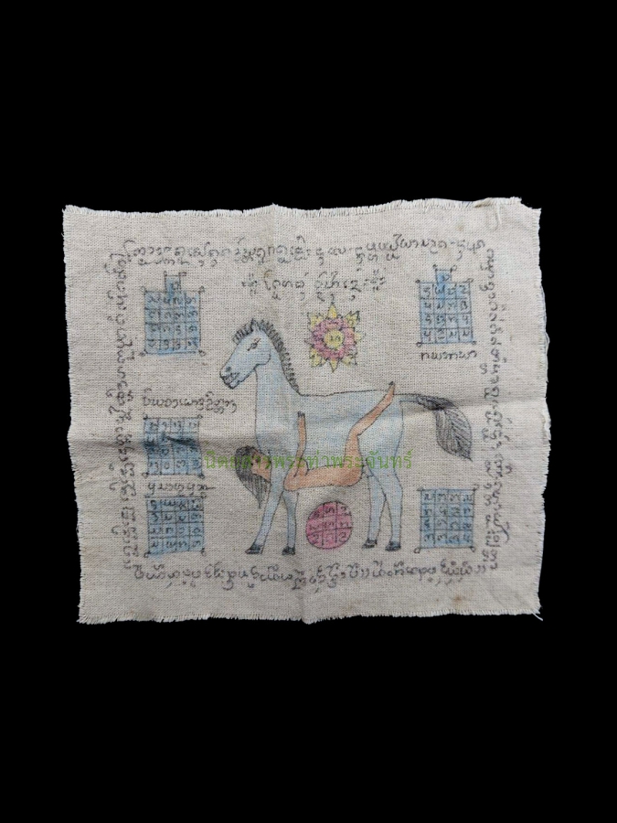 หมายเลขใบการันตี 66034473 ชื่อพระ ผ้ายันต์ม้าเสพนางครูบาวัง วัดบ้านเด่น ปี 2490 จ.ตาก เจ้าของ คุณ ชลรดี หมวดหมู่ เครื่องราง