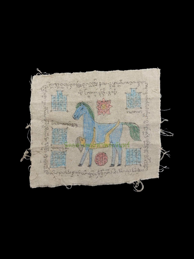 หมายเลขใบการันตี 66034604 ชื่อพระ ผ้ายันต์ม้าเสพนางครูบาวัง วัดบ้านเด่น ปี 2490 จ.ตาก เจ้าของ ๙ มงคล หมวดหมู่ เครื่องราง