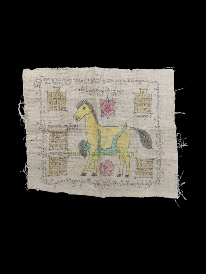 หมายเลขใบการันตี 66034605 ชื่อพระ ผ้ายันต์ม้าเสพนางครูบาวัง วัดบ้านเด่น ปี 2490 จ.ตาก เจ้าของ ๙ มงคล หมวดหมู่ เครื่องราง