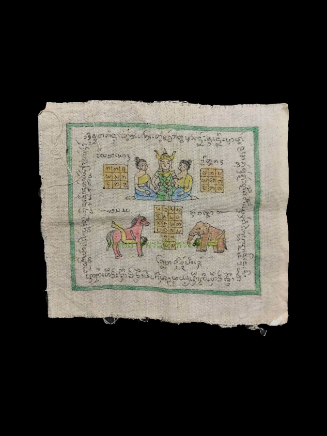 หมายเลขใบการันตี 66034609 ชื่อพระ ผ้ายันต์ม้าเสพนางครูบาวัง วัดบ้านเด่น ปี 2490 จ.ตาก เจ้าของ ๙ มงคล หมวดหมู่ เครื่องราง