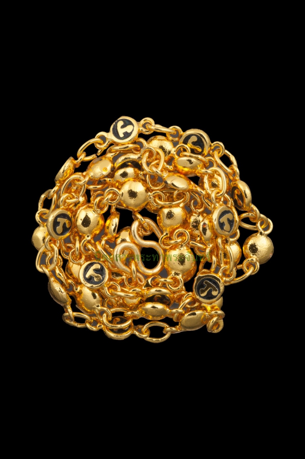 หมายเลขใบการันตี 66052628 ชื่อพระ สร้อยหัวนะโมหลวงพ่อคล้าย วัดสวนขัน ปี 2510 เนื้อกะไหล่ทองลงถม จ.นครศรีธรรมราช เจ้าของ วัดไทยสำเร็จ หมวดหมู่ เครื่องราง