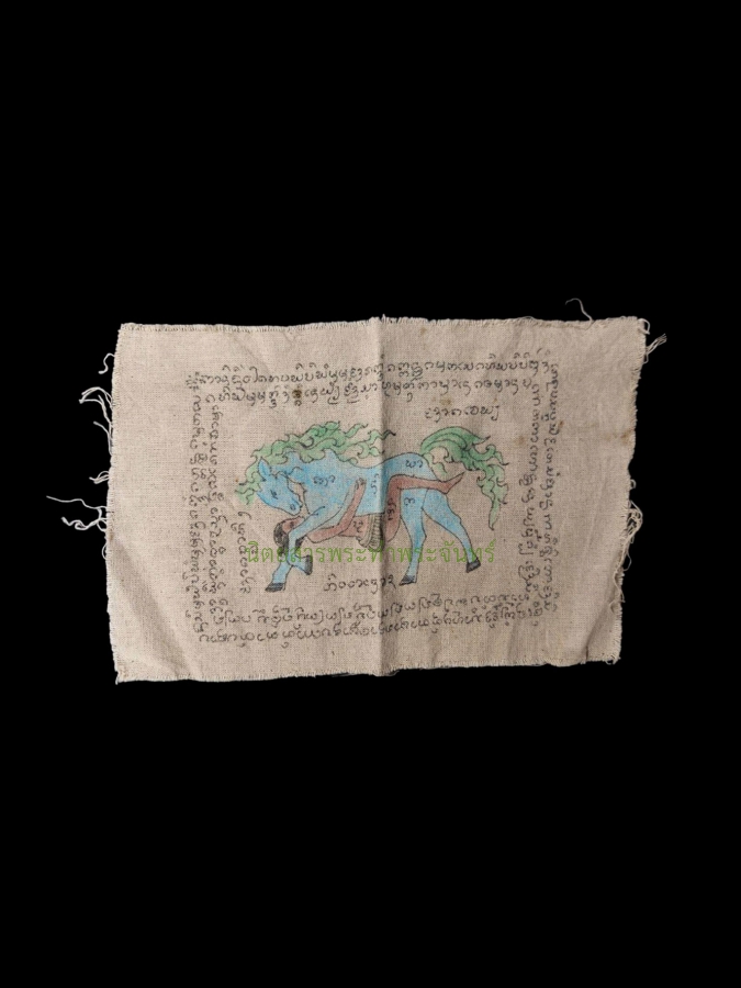 หมายเลขใบการันตี 66062620 ชื่อพระ ผ้ายันต์ม้าเสพนางครูบาวัง วัดบ้านเด่น ปี 2490 จ.ตาก เจ้าของ กบจำศีล หมวดหมู่ เครื่องราง