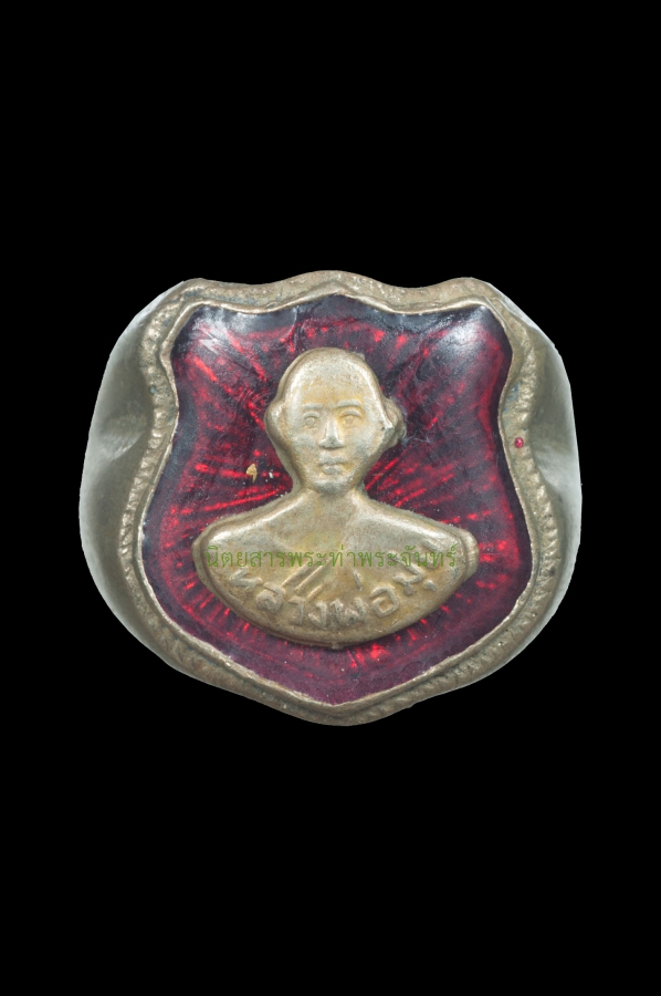 หมายเลขใบการันตี 66080883 ชื่อพระ แหวนหน้าโล่ห์หลวงพ่อมุ่ย วัดดอนไร่ ปี 2500 ลงยาสีแดง จ.สุพรรณบุรี เจ้าของ ARM หมวดหมู่ เครื่องราง