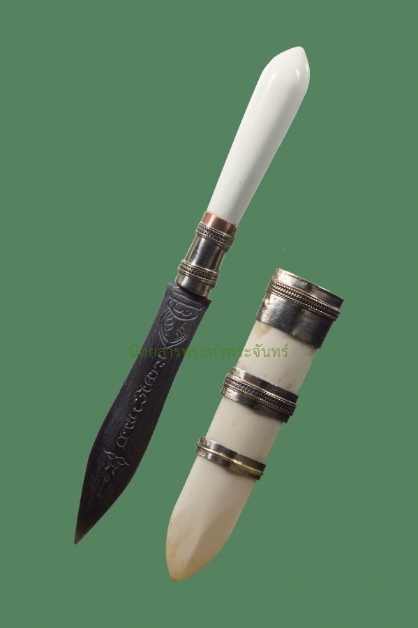 หมายเลขใบการันตี 68040747 ชื่อพระ พระขรรค์ปากกาหลวงพ่อจ้อย วัดศรีอุทุมพร ปี 2526 ด้ามงา ฝักงา ใบโลหะ จ.นครสวรรค์ เจ้าของ PUM หมวดหมู่ เครื่องราง