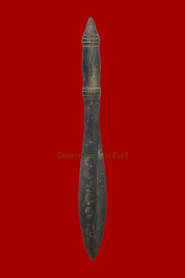 หมายเลขใบการันตี 68080529 ชื่อพระ พระขรรค์หลวงพ่อโศก วัดปากคลองบางครก ปี 2470-2482 เนื้อเขาควายเผือก จ.เพชรบุรี เจ้าของ คุณ เทพประทานพร หมวดหมู่ เครื่องราง
