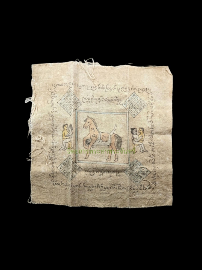 หมายเลขใบการันตี 68090729 ชื่อพระ ผ้ายันต์ม้าเสพนางครูบาวัง วัดบ้านเด่น ปี 2490 จ.ตาก เจ้าของ SOPA หมวดหมู่ เครื่องราง