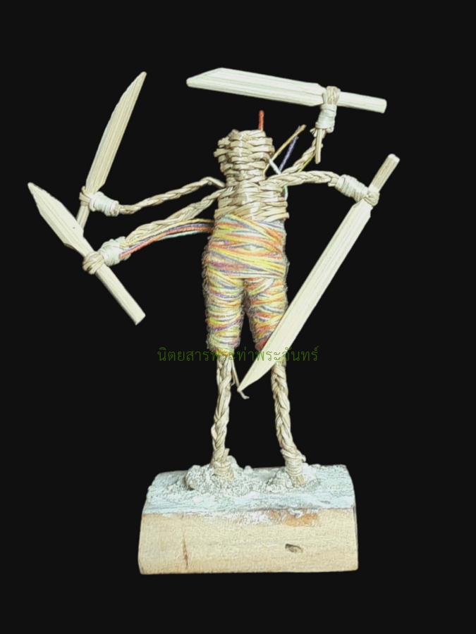 หมายเลขใบการันตี 68120396 ชื่อพระ หุ่นพยนต์อาจารย์ปี่(สมาน แจ้งเจริญ) พิมพ์ 6 มือ เนื้อไม้ จ.อยุธยา เจ้าของ วัดไทยสำเร็จ หมวดหมู่ เครื่องราง