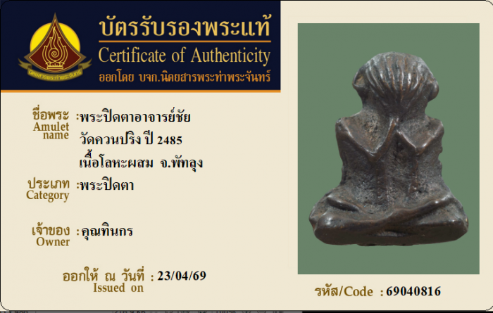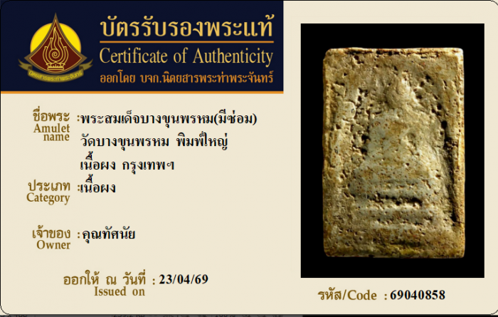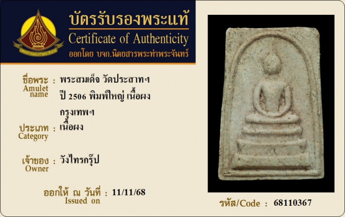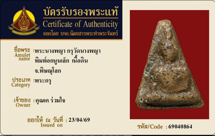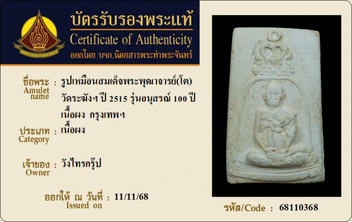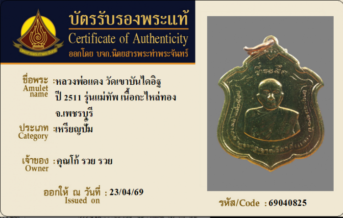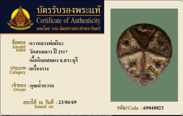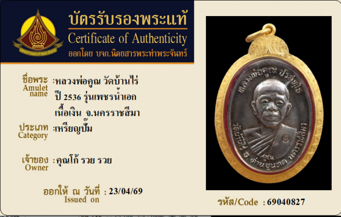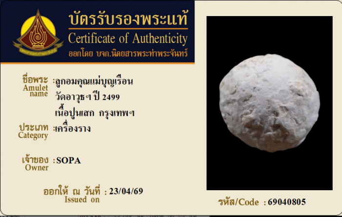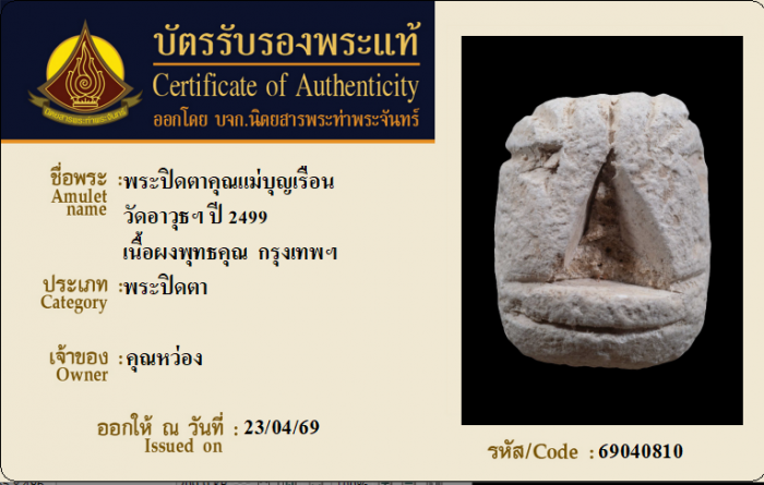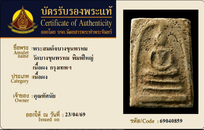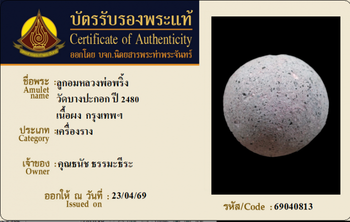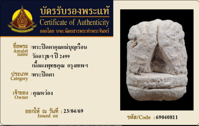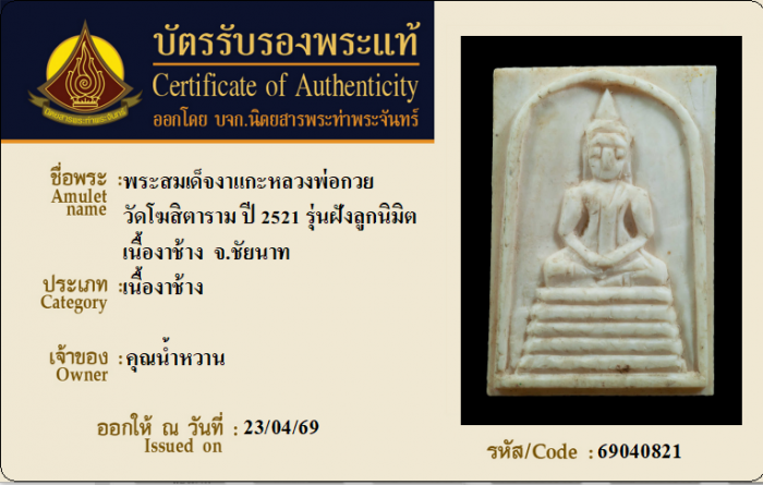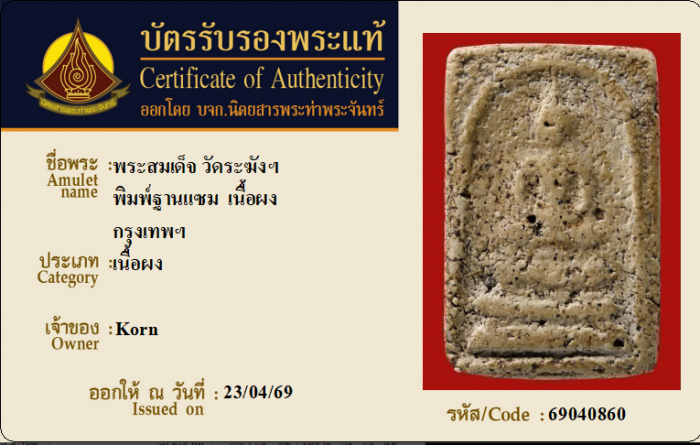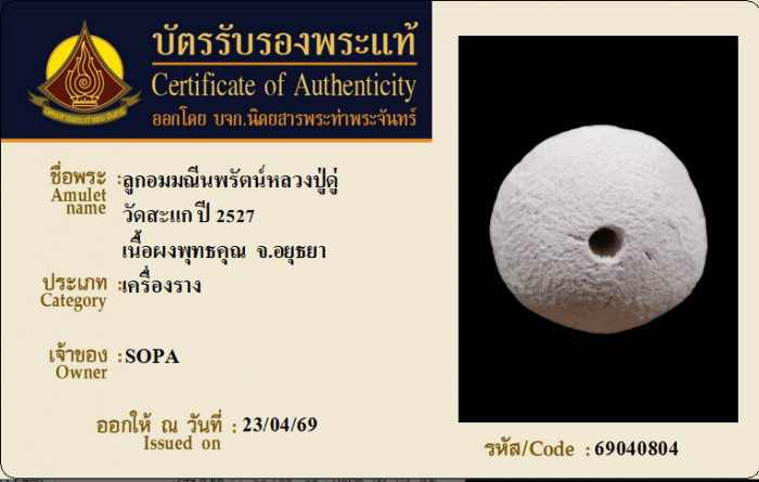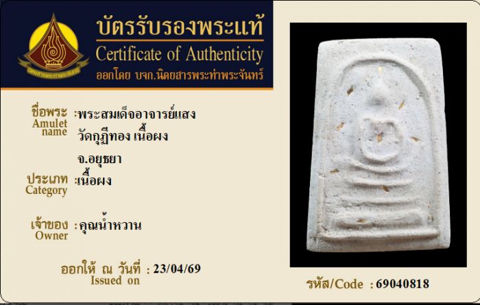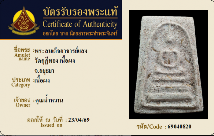 ค้นหาใบการันตีพระแท้