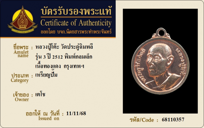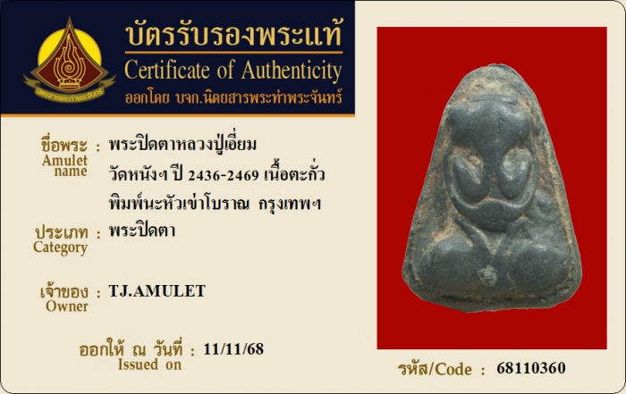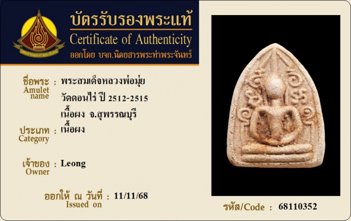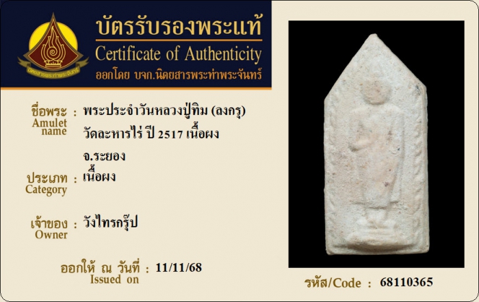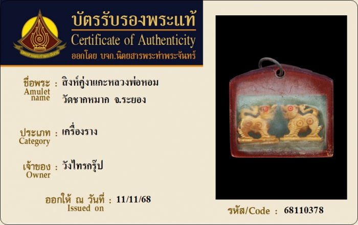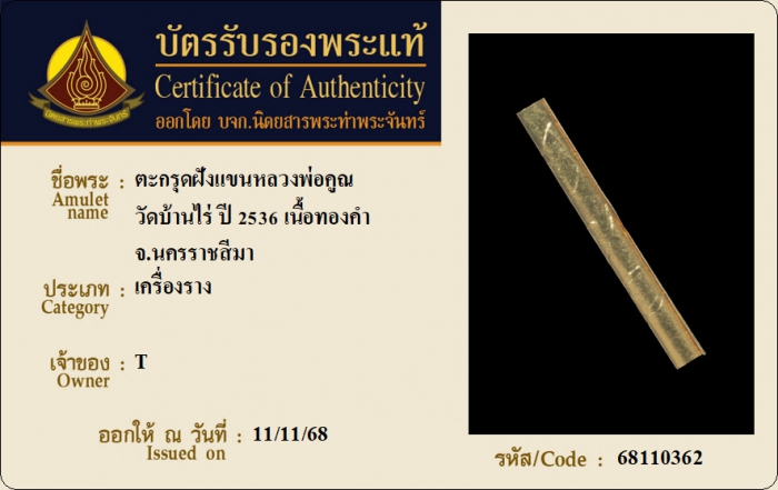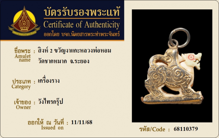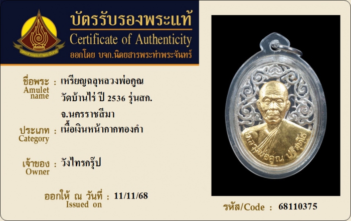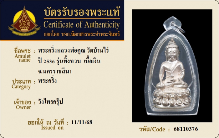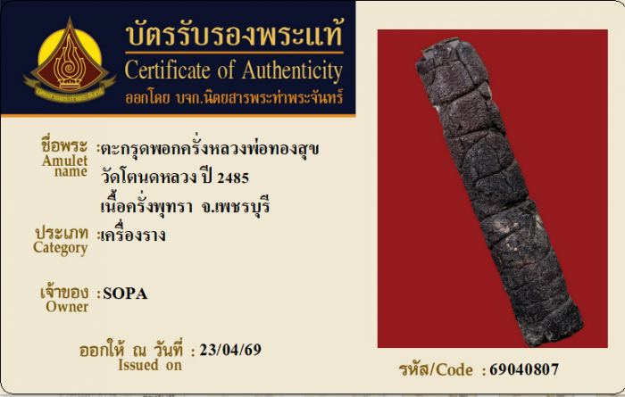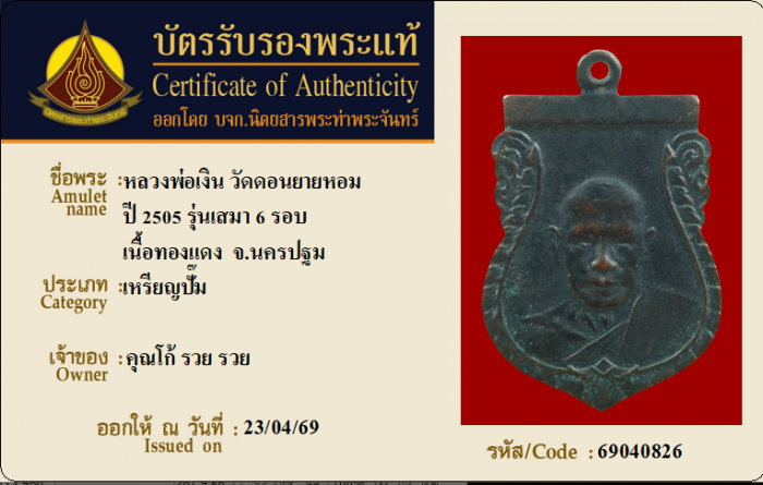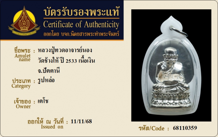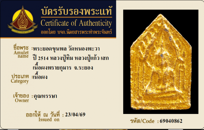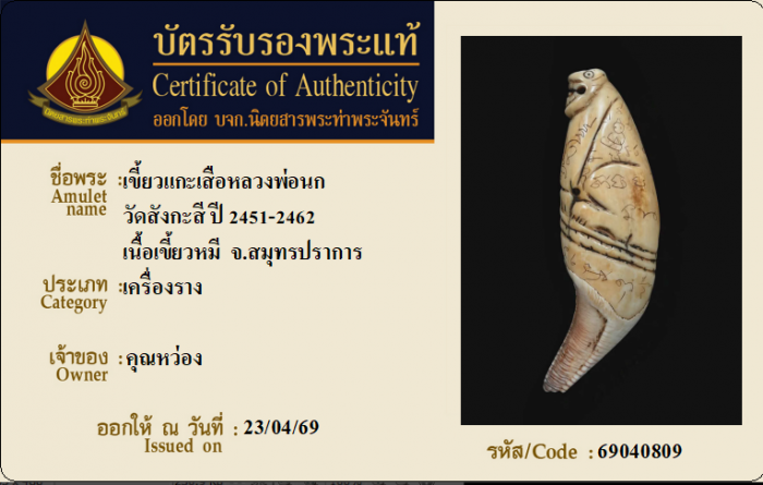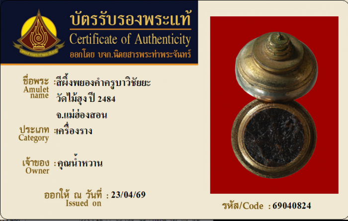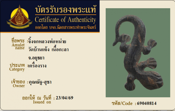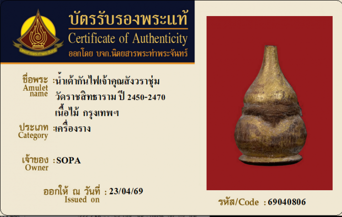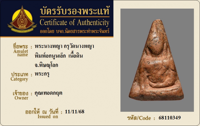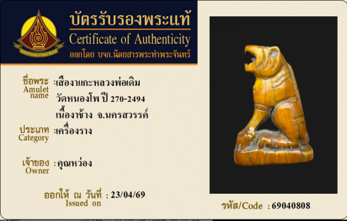 ค้นหาใบการันตีพระแท้