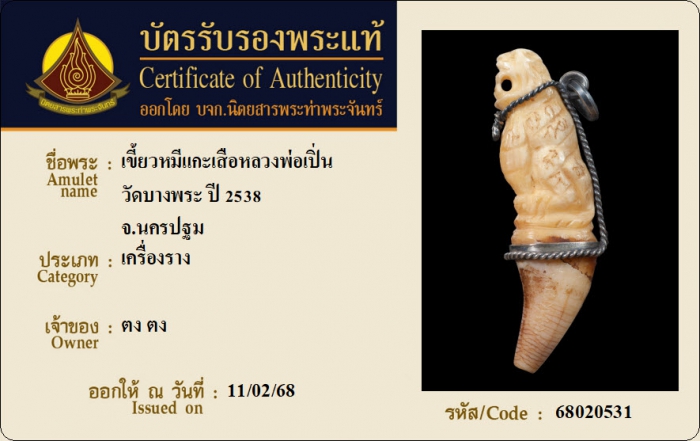 ค้นหาใบการันตีพระแท้