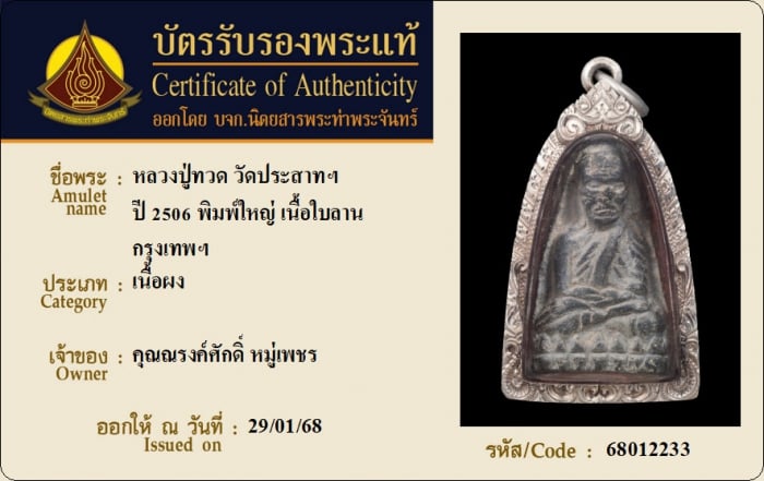 ค้นหาใบการันตีพระแท้