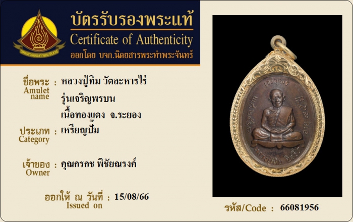 ค้นหาใบการันตีพระแท้