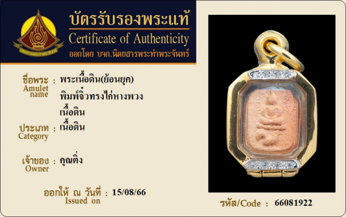 ค้นหาใบการันตีพระแท้