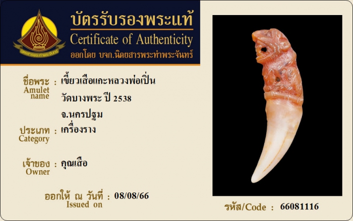 ค้นหาใบการันตีพระแท้