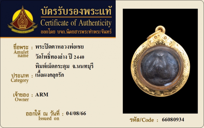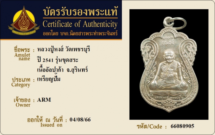 ค้นหาใบการันตีพระแท้