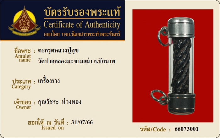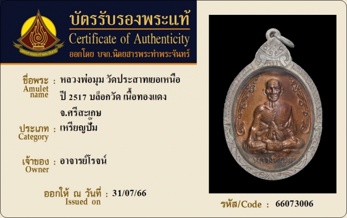 ค้นหาใบการันตีพระแท้