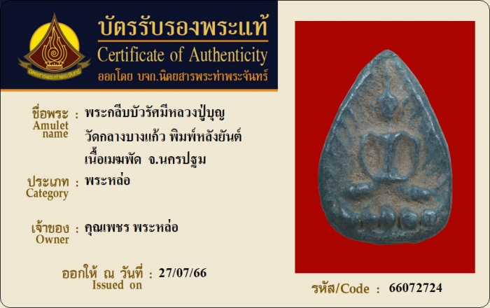 ค้นหาใบการันตีพระแท้