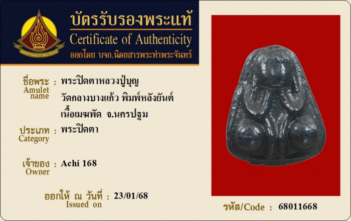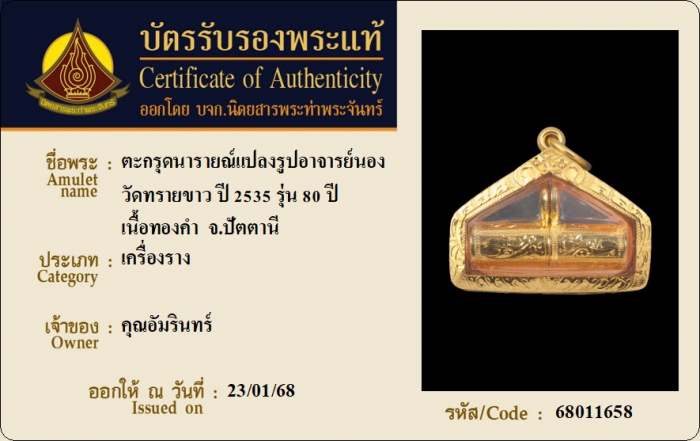 ค้นหาใบการันตีพระแท้