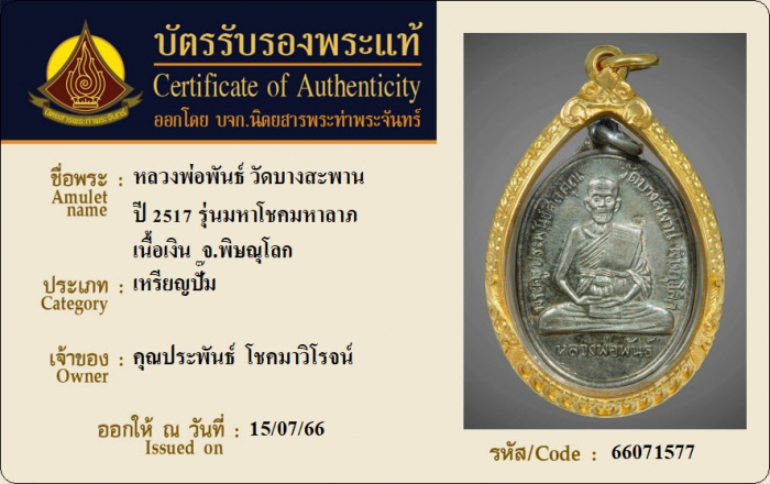 ค้นหาใบการันตีพระแท้