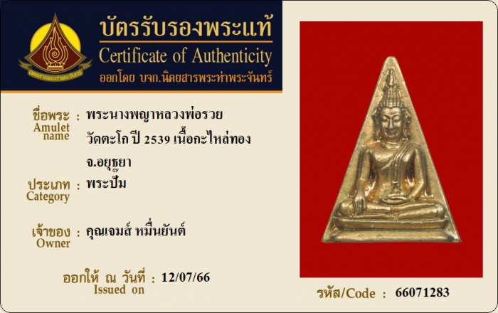 ค้นหาใบการันตีพระแท้