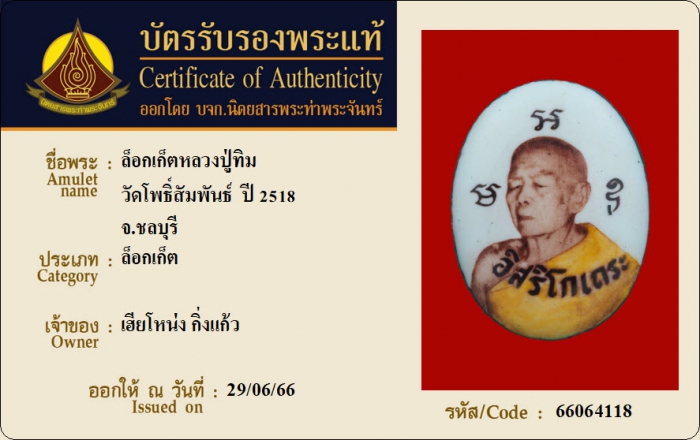 ค้นหาใบการันตีพระแท้