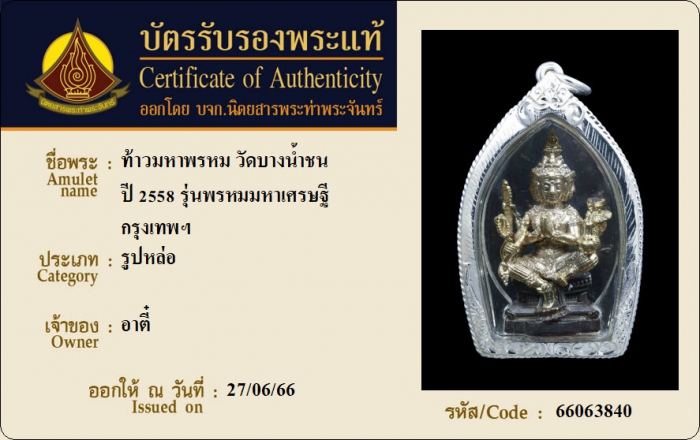 ค้นหาใบการันตีพระแท้