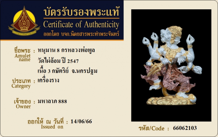 ค้นหาใบการันตีพระแท้
