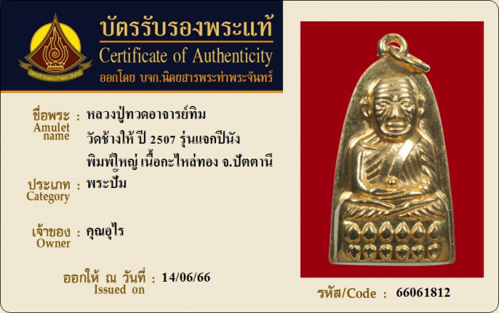 ค้นหาใบการันตีพระแท้