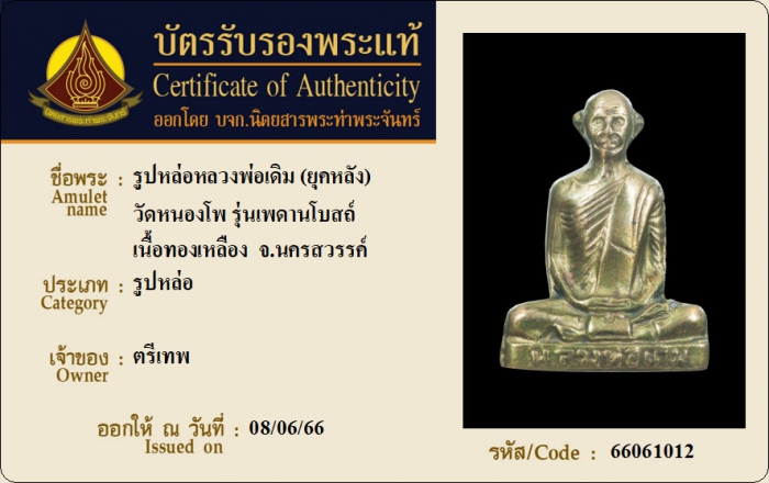 ค้นหาใบการันตีพระแท้