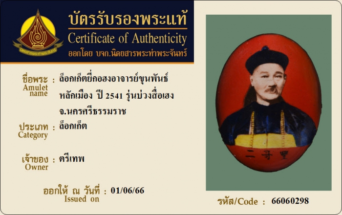 ค้นหาใบการันตีพระแท้