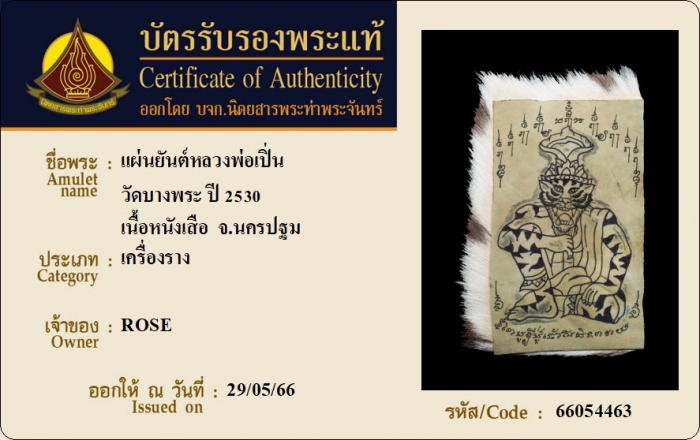 ค้นหาใบการันตีพระแท้