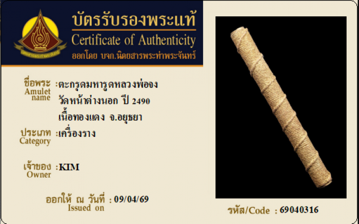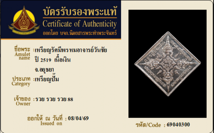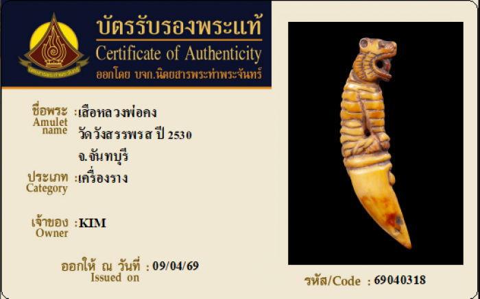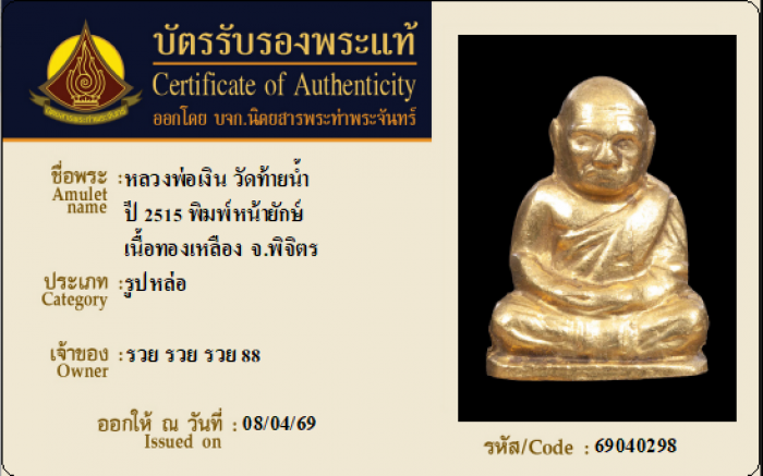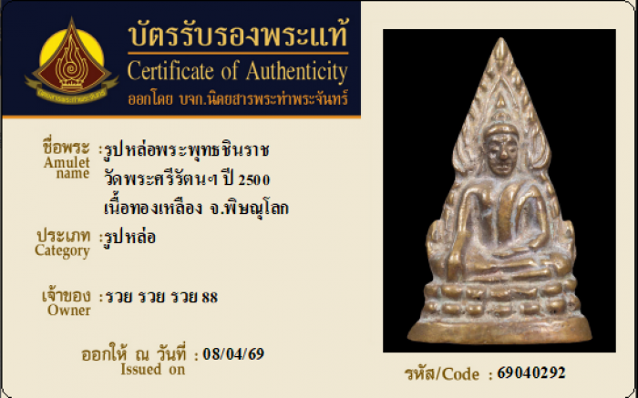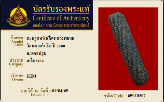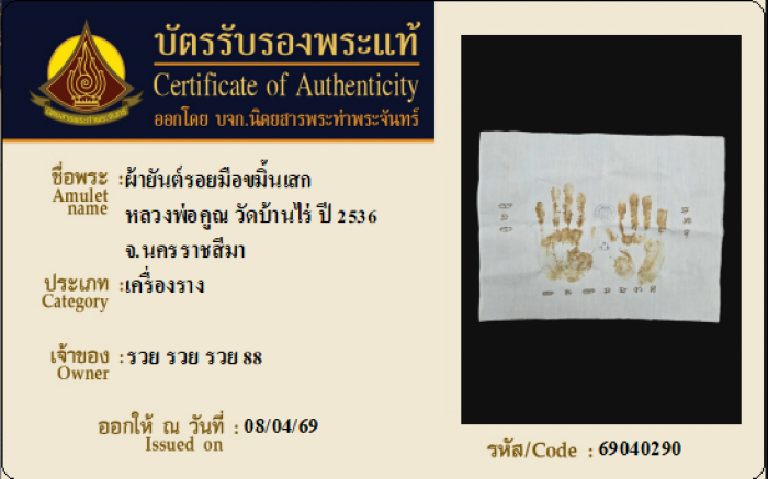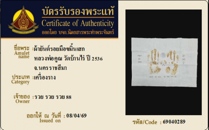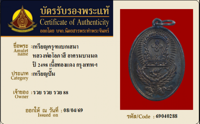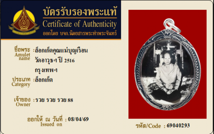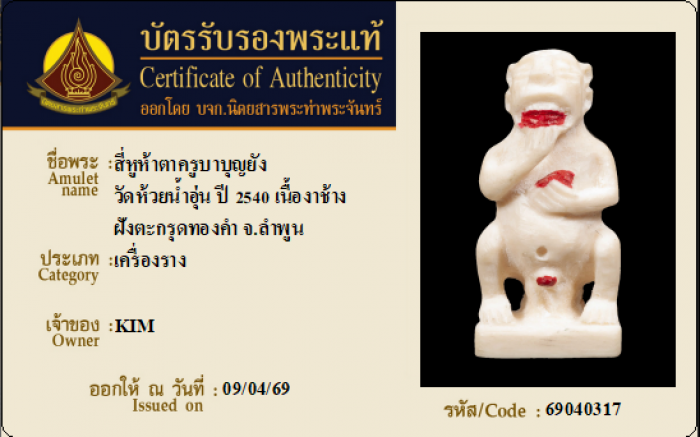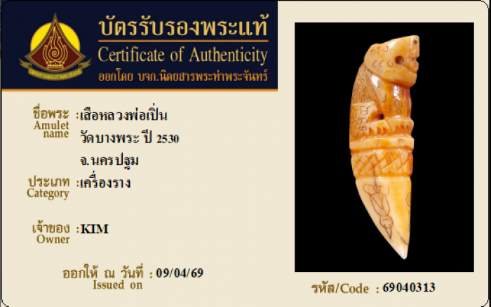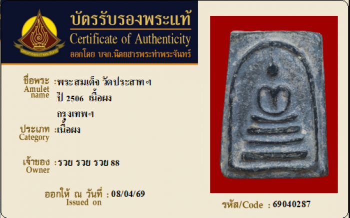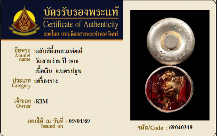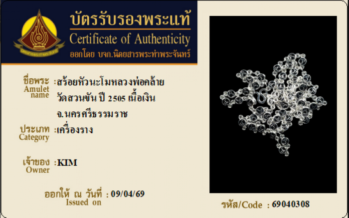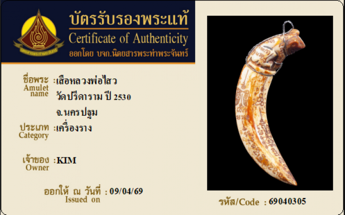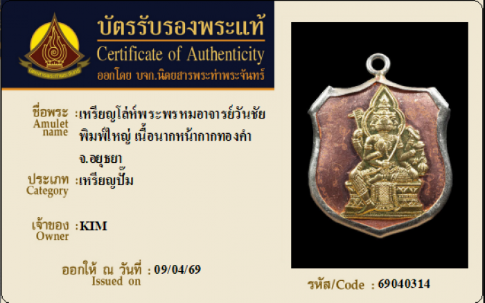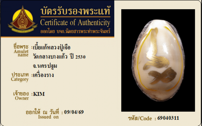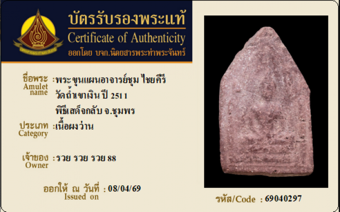 ค้นหาใบการันตีพระแท้