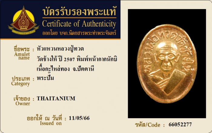 ค้นหาใบการันตีพระแท้